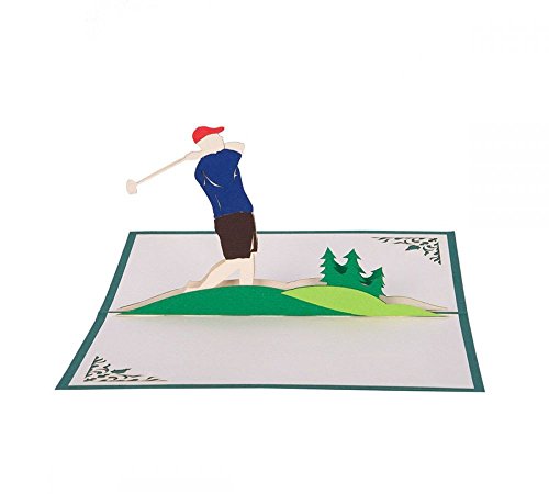 WOW-EFFEKT: Beim Aufklappen dieser Karte entfaltet sich eine filigrane Papierkonstruktion eines Golfspielers beim Abschlag. In strahlenden Farben und mit viel Liebe zum Detail