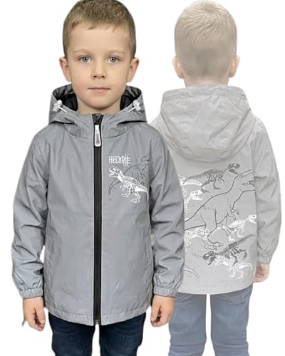 🦖 MODISCH UND FUNKTIONAL: Die HECKBO Dinosaurier Kinder Übergangsjacke überzeugt durch ihr trendiges Design mit Dino-Prints und hoher Sichtbarkeit. Eine ideale Kinder Freizeitjacke für Alltag und Abenteuer.