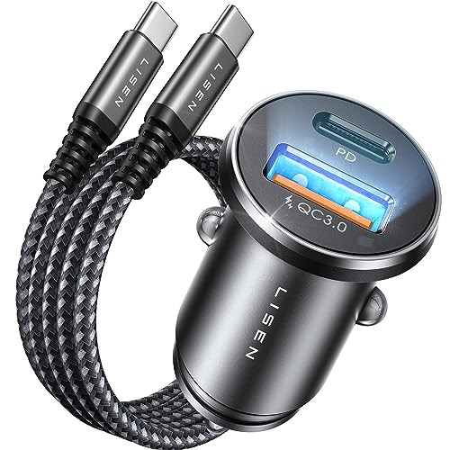 LISEN Car Charger USB C Adapter 48W [Mini&Metal] Cigarette Lighter USB Charger PD30W&QC3.0 Car Phone Fast Charging for Samsung Galaxy S23/22 iPhone 16 Pro Max 13 12 Google Pixel