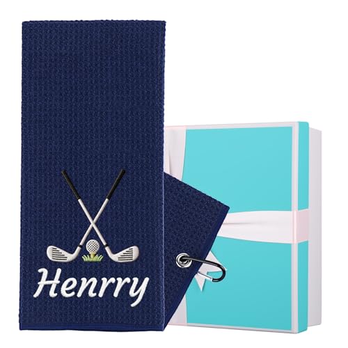 NGTSFLY Lustiges Golf Handtuch, Personalisierte Bestickte Golfhandtücher für Golftaschen mit Clip, Golfgeschenk für Männer Frauen, Leicht zu Reinigendes Golfzubehör, 40 x 60 cm (Navy blau)