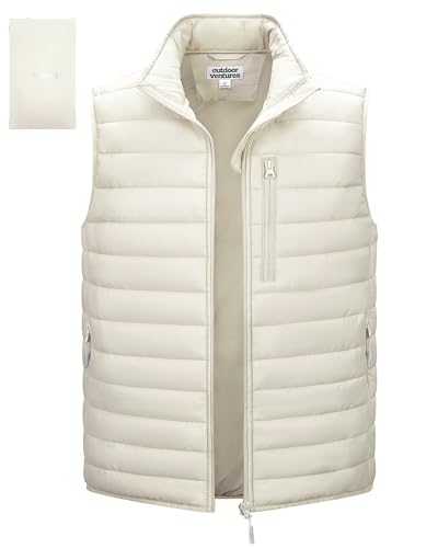 Outdoor Ventures Herren Packbare Steppweste Outdoor Übergangswesten Gefütterte Hybrid Sportwesten für Männer Laufen Golf Wandern Reiten Aprikose XL