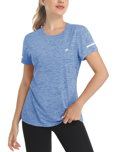 TACVASEN Sport Oberteile Damen Kurzarm Atmungsaktiv Fitnessshirt Sportshirt Schnell-Trocknend Laufshirt Outdoor Golf Shirt Meliert (M, Hellblau)